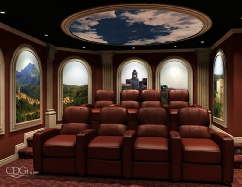 If that sounds exciting, realize that an entry level Home Theater doesn't have to be astronomical in price. We can design a system that is scaleable and can be upgraded over time to add new sources or design elements. Theaters range from mild simple systems in a spare room to wild elaborate fully dedicated & design integrated systems with custom upholstery, lighting control and enhanced acoustics.