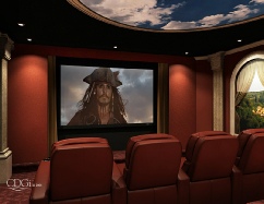 A Home Theater is actually a room in your home purely dedicated and purpose built for watching movies, streaming videos, HD cable or satellite. Recline in your chair, grab the touch screen & press play. The lights automatically dim as playback of the movie begins. You are watching 1080p Full HD or 3D from the new JVC or Digital Projection HD or 3D projector. In front of you is a custom mounted high-contrast screen from Stewart or Da-lite. The video appears so real you would swear you were there. The Atlantic Technology speakers reproduce every detail with absolute clarity, you will hear things you never heard before in films you've watched a hundred times. The acoustic treatments are doing their job dampening or enhancing the sound allowing the audio processor to create an environment you sense in three dimensions.